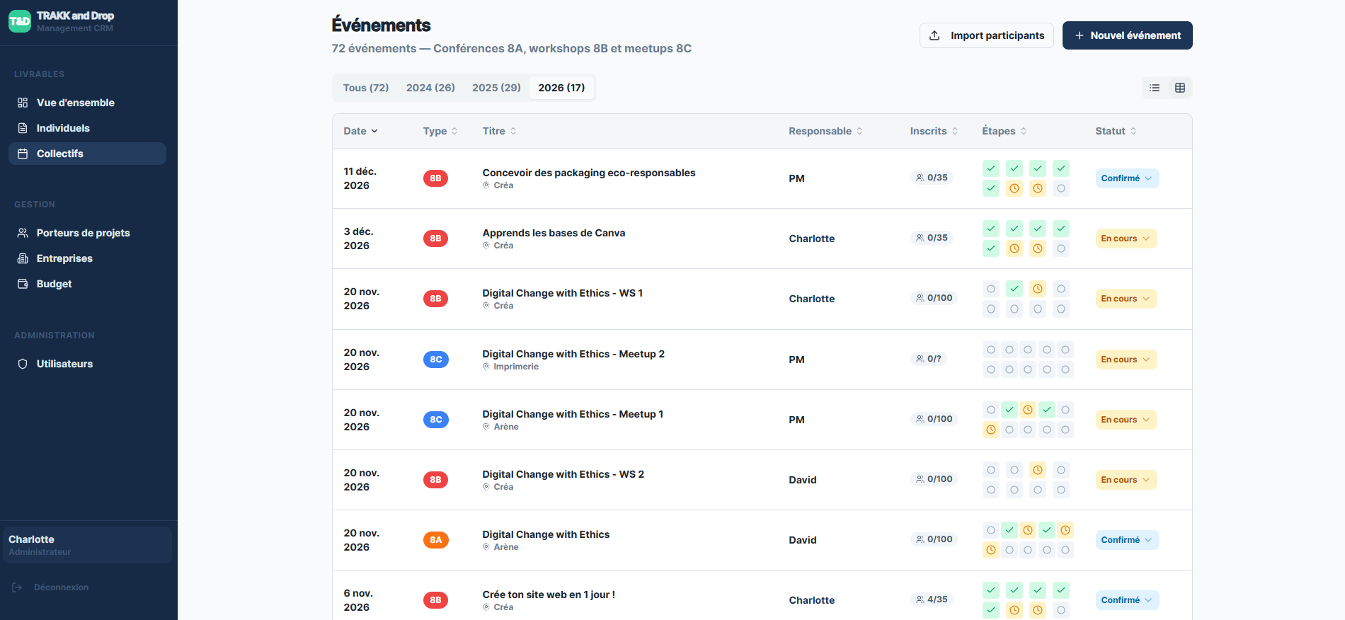 Structurer les accompagnements, événements, budgets et obligations européennes d’un écosystème complexe.